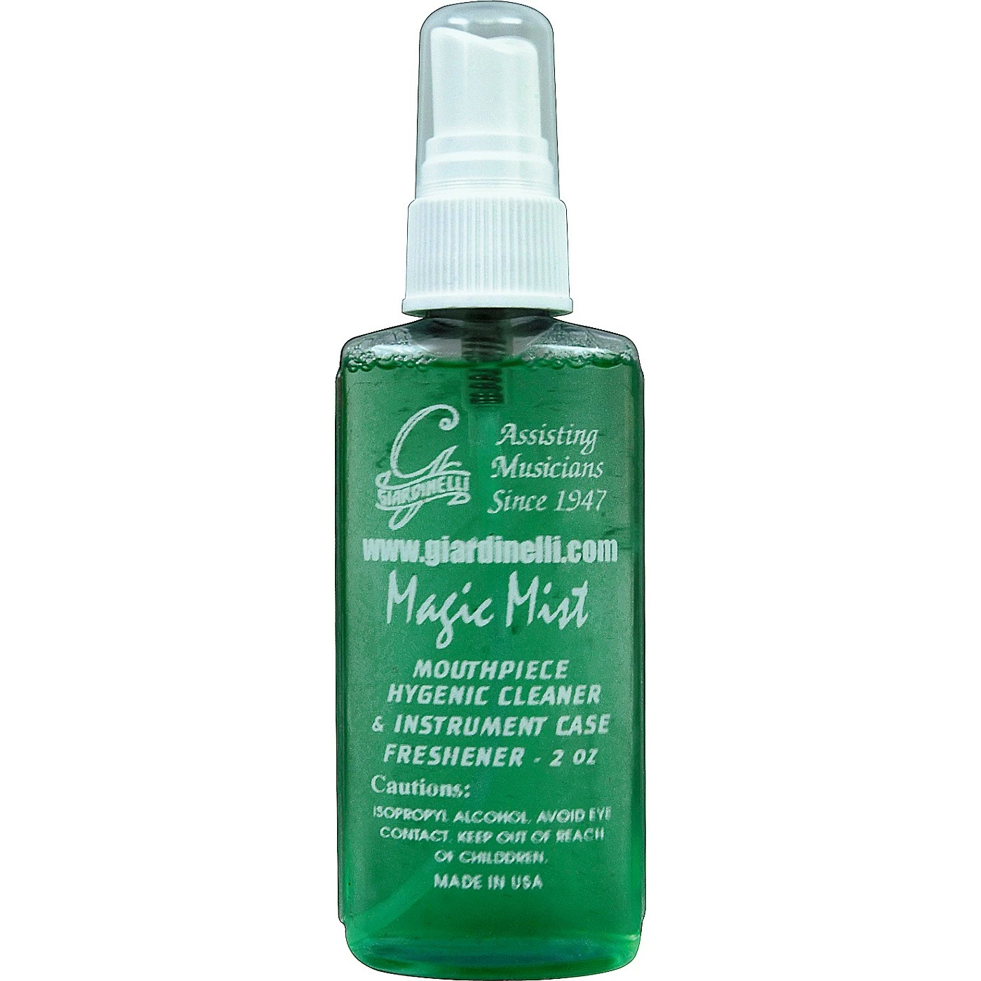 Giardinelli Magic Mist Hygienic Mouthpiece Cleaner is delivered in a convenient 2 oz. pump-spray bottle. Use it to keep your instrument case smelling fresh as well. Made in the USA.